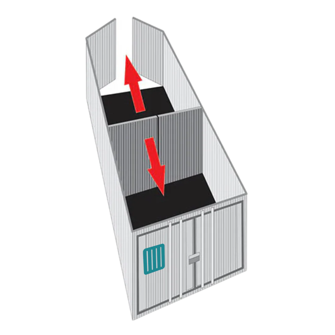 La cloison de séparation amovible pour conteneur maritime est une solution innovante, déjà adoptée par de nombreuses entreprises de self-stockage au Canada et aux États-Unis. Elle vous permet de diviser un conteneur standard en deux espaces sécurisés, sans altérer sa structure. Facile à installer, sans outils ni fixations permanentes, elle est idéale pour optimiser l’espace de rangement, créer deux zones distinctes (congelées/fraîches, marchandise privée/professionnelle, etc.), ou aménager un bureau modulaire à l’intérieur du conteneur.