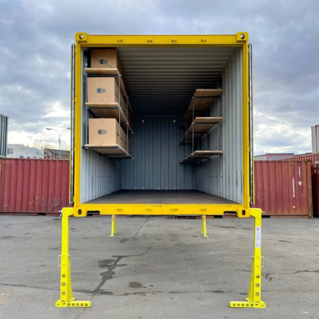 Grâce à leur système de fixation sur les coins ISO du conteneur, les pieds Confoot se montent en quelques minutes sans outillage lourd. Ils permettent une mise à niveau parfaite pour faciliter le chargement ou le déchargement, même à l’aide d’un chariot élévateur.
